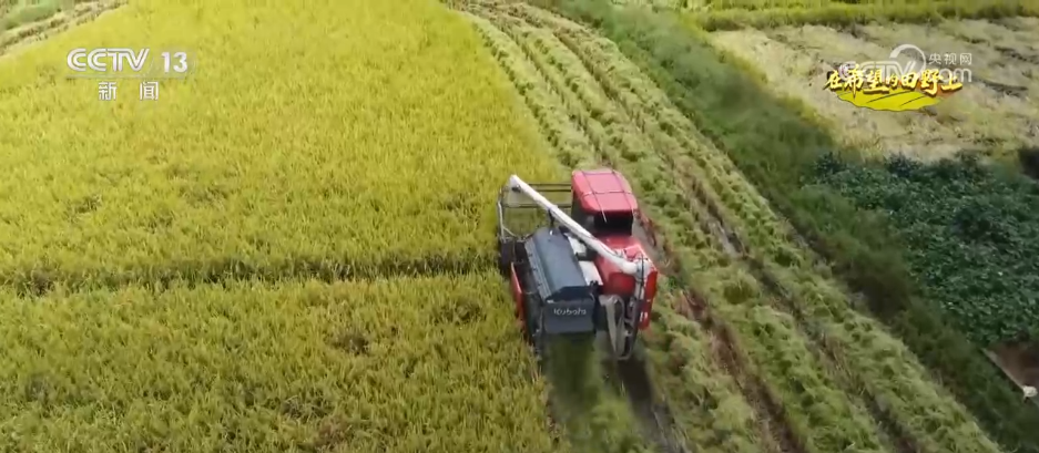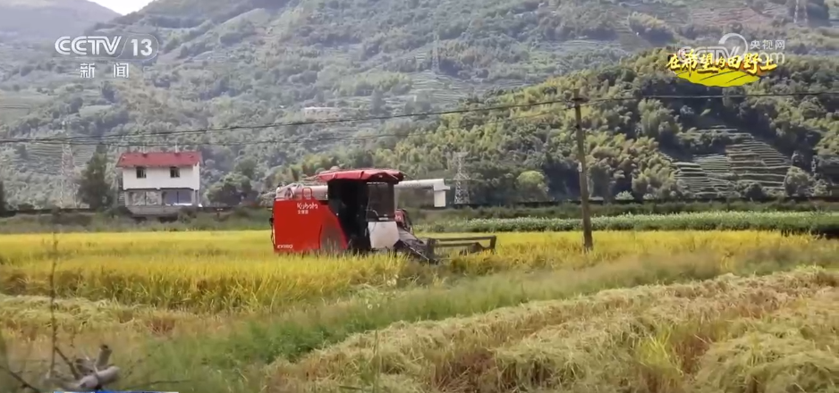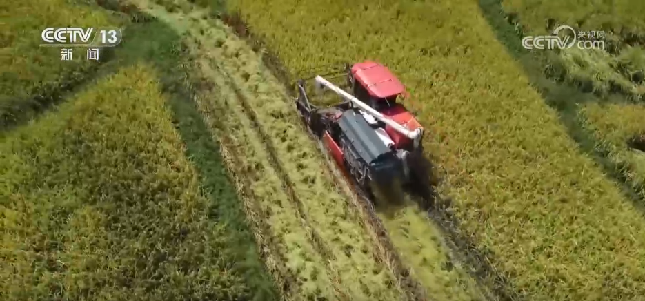 正在宁德市霞浦县牙城镇,金黄的稻田坐落正在山脚取河道之间。受地形影响,从动化水稻收割机沿着田埂慢慢前进,割稻、脱粒、清选趁热打铁;田埂边,运粮车等待正在侧,金黄的谷粒倾泻而下,整个功课流程顺畅高效。